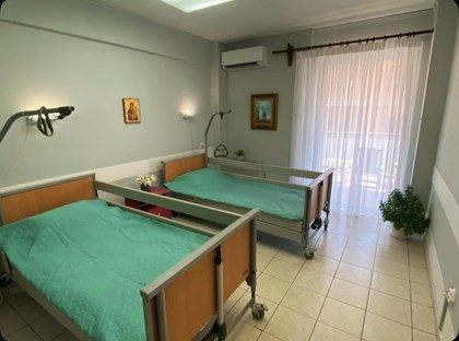 Οι περιθαλπόμενοι διαμένουν σε μονόκλινα, δίκλινα με ατομικό μπάνιο, μπαλκόνι, τηλεόραση, αυτόνομη θέρμανση-κλιματισμό, κουδούνι εσωτερικής επικοινωνίας δίπλα από κάθε κλίνη. Οι κοινόχρηστοι χώροι είναι άνετοι, φωτεινοί, ευρύχωροι, προσφέρουν μια ευχάριστη και ασφαλή διαμονή και αποπνέουν αίσθημα σπιτικής θαλπωρής. Το θεραπευτήριο διαθέτει μία φιλόξενη τραπεζαρία στην οποία γευματίζουν οι περιθαλπόμενοι και ένα ευρύχωρο και πολυτελές καθιστικό που περνούν τις ελεύθερες ώρες τους.