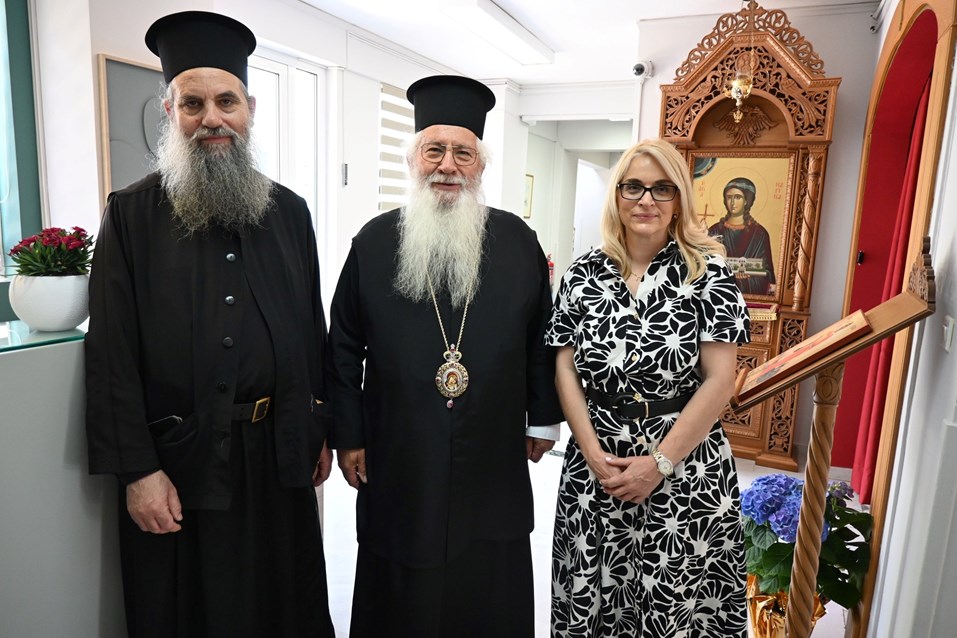 Ακολούθησε επίσημη επίσκεψη των Σεβασμιωτάτων Μητροπολιτών στο Ίδρυμα, όπου ξεναγήθηκαν στους χώρους και ενημερώθηκαν για τη συνέχεια του έργου που ο Μακαριστός Πρόεδρος και Πνευματικός Πατέρας του τόπου μας οραματίστηκε και θεμελίωσε με κόπο, πίστη και αγάπη.