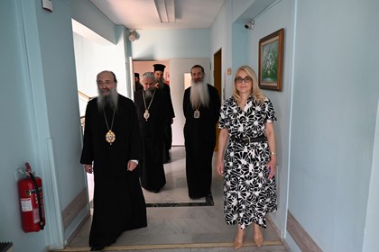 Ακολούθησε επίσημη επίσκεψη των Σεβασμιωτάτων Μητροπολιτών στο Ίδρυμα, όπου ξεναγήθηκαν στους χώρους και ενημερώθηκαν για τη συνέχεια του έργου που ο Μακαριστός Πρόεδρος και Πνευματικός Πατέρας του τόπου μας οραματίστηκε και θεμελίωσε με κόπο, πίστη και αγάπη.